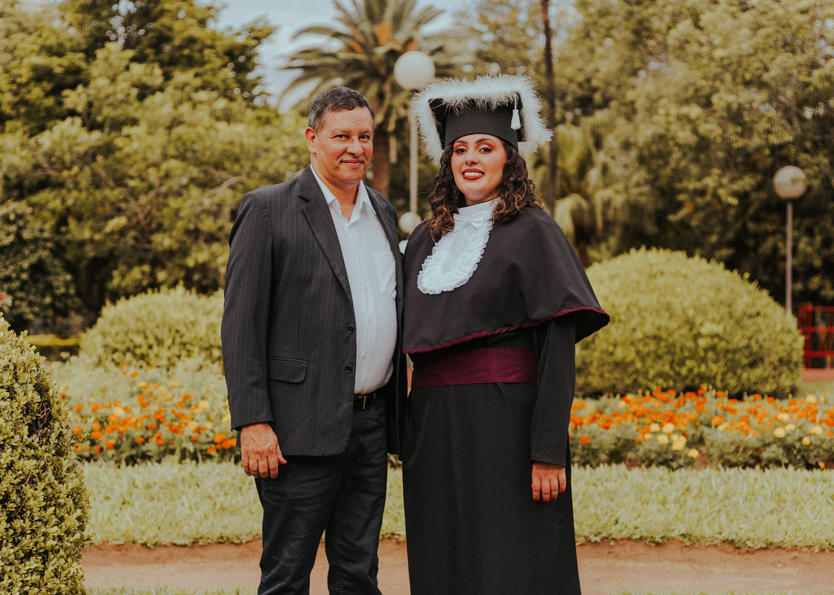 Fizemos parte do ensaio em estúdio, com fotos para uso profissional pela Larissa, e parte com prova de toga, junto com a família da formanda.